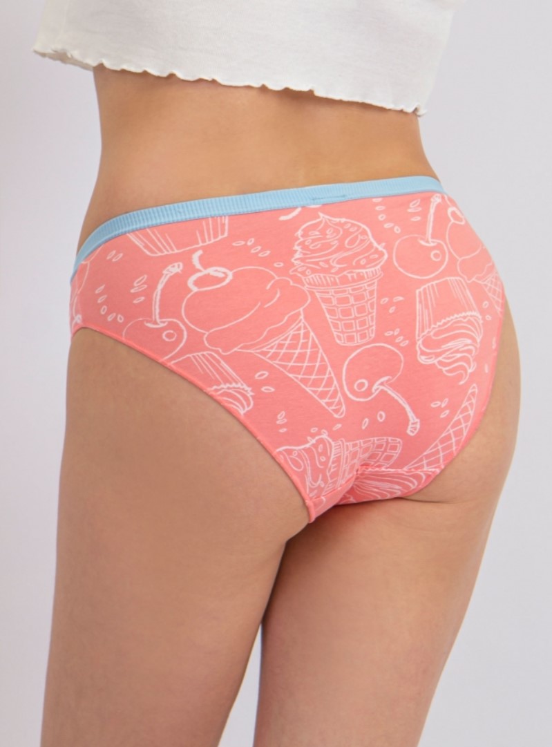 Женские трусы от торговой марки Индефини. Трусы-слипы из хлопка, розового цвета, с принтом, на мягкой резинке, средней посадки.