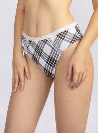 Женские трусы от торговой марки Индефини. Трусы-шорты из бамбука и хлопка, бело-серого цвета, с принтом, с кружевными вставками, средней посадки, на мягкой резинке.