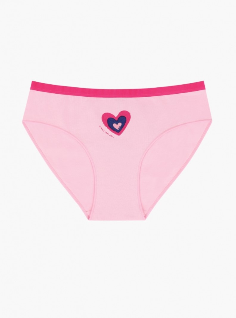 Женские трусы от торговой марки Индефини. Трусы-слипы из бамбука и хлопка, розового цвета, с принтом, с принтом-надписью, средней посадки, на мягкой резинке.