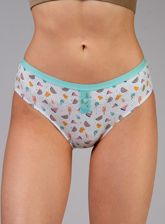 Женские трусы от торговой марки Индефини. Трусы-слипы из бамбука и хлопка, белого цвета, с принтом, с кружевной вставкой, на мягкой резинке, средней посадки.