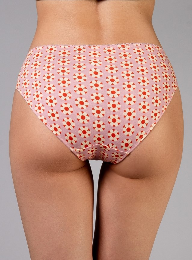 Женские трусы от торговой марки Индефини. Трусы-слипы изготовлены из хлопка, розового цвета с цветочным принтом, на мягкой резинке, средней посадки.
