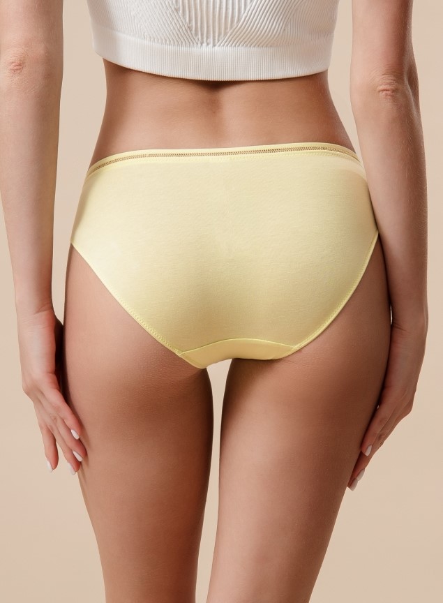 Женские трусы от торговой марки Индефини. Трусы-слипы изготовлены из хлопка с добавлением эластана, желтого цвета, на мягкой резинке, средней посадки.