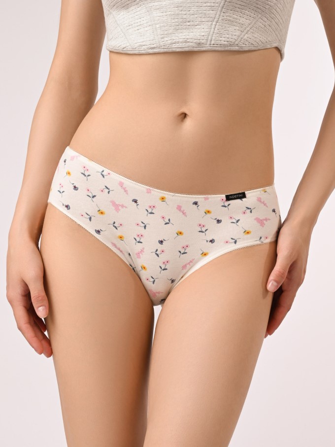 Женские трусы-слипы от Indefini, изготовленные из хлопка с добавлением эластана, мягко прилегают к телу, обеспечивая приятные ощущения в течение всего дня. Хлопковый материал позволяет коже дышать, а эластичная структура гарантирует, что трусы сохранят свою форму даже после многократных стирок. Средняя посадка и тонкая резинка обеспечивают удобную и надёжную фиксацию без дискомфорта. Трусы украшены цветочным принтом, который добавляет легкости и женственности образу. Эти трусы-слипы от Indefini являются выбором для повседневного использования, сочетающий стиль и комфорт.
