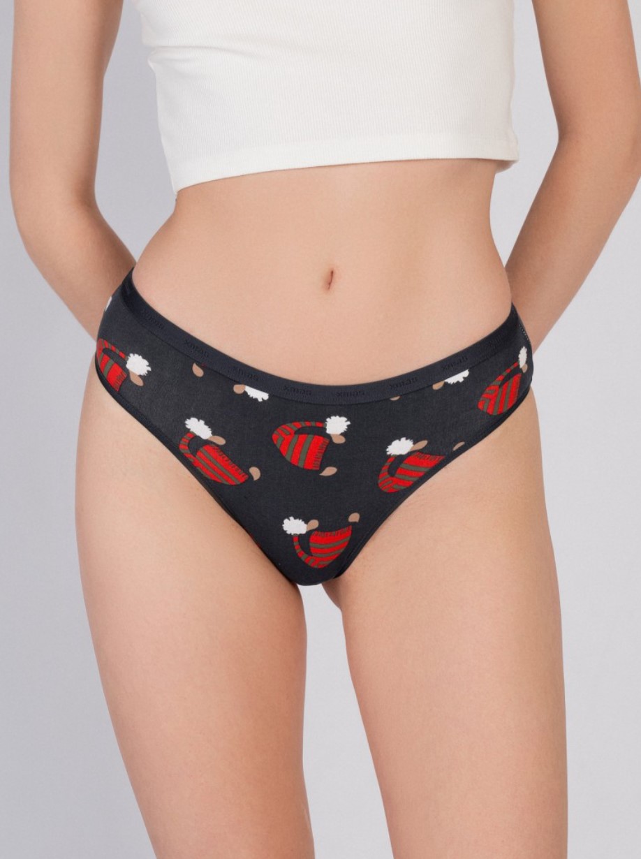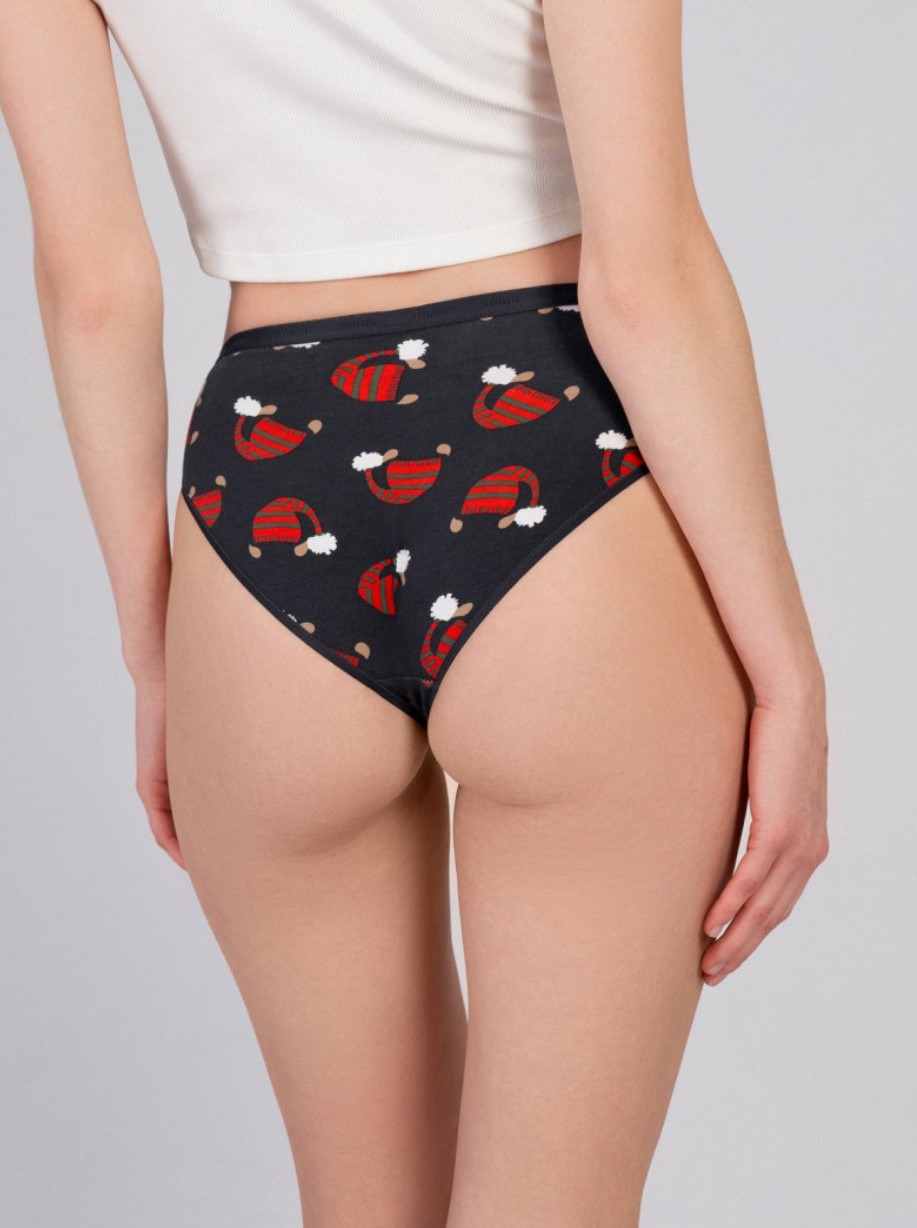 Женские трусы-слипы приятные в носке и ощущаются словно вторая кожа. Они мягкие и гладкие на ощупь благодаря наличию в составе хлопкового материала. Мягкая резинка на талии надежно фиксирует трусы на теле, что не позволит им сползать при использовании. Украшением трусов-слипов является принт с изображением новогодних колпаков.