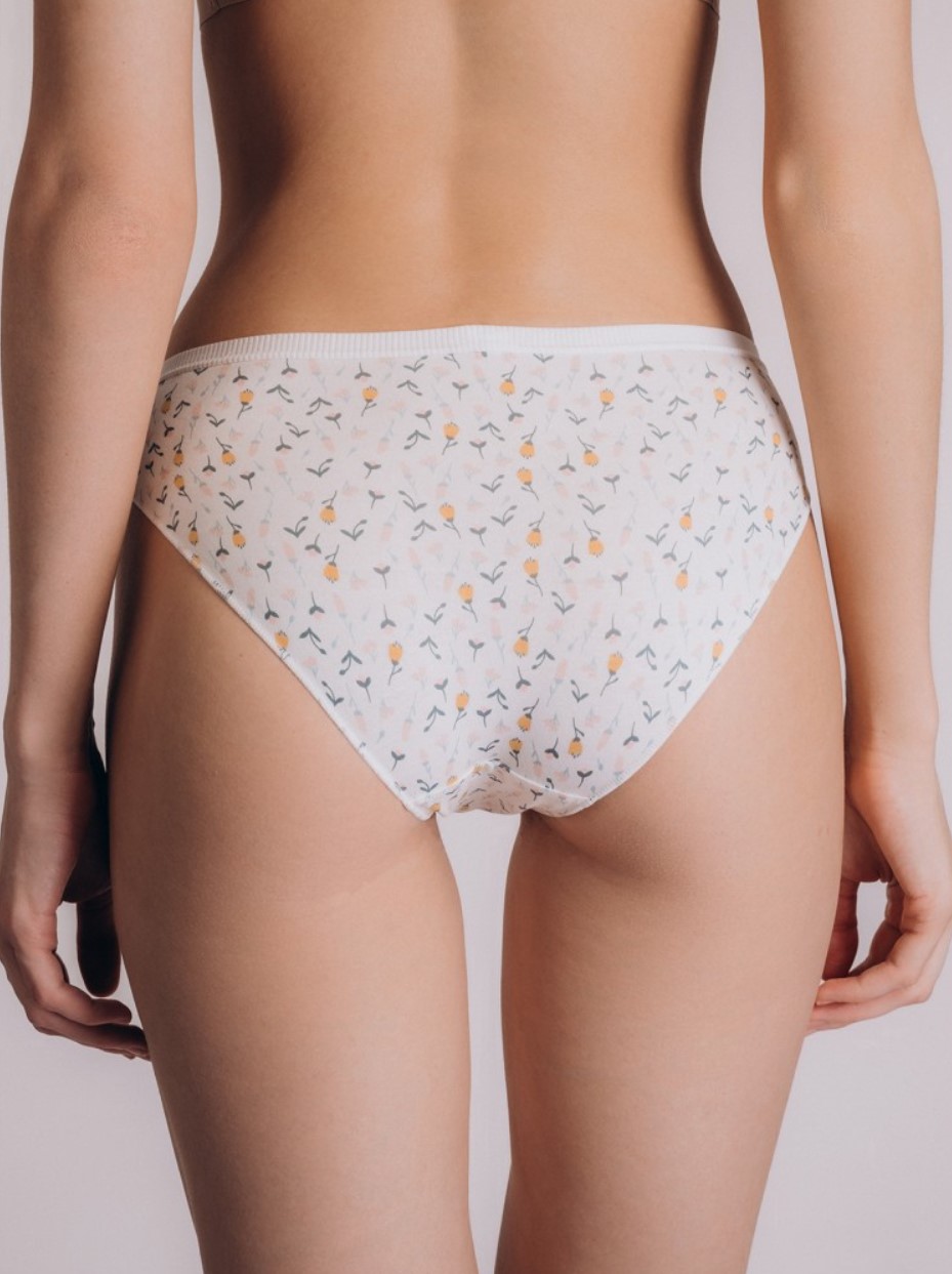 русы-слипы из хлопка, молочного цвета, с принтом, c кружевом, на мягкой резинке, средней посадки.