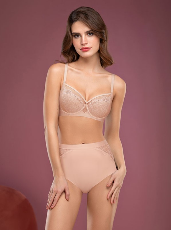 Трусы-слип с высокой линией талии. Высота бочка 16 см. Двуслойная, проклеенная передняя деталь. По талии имеется проклеенный поясок в 1,5см вместо резинок и по ножкам микрофибра фрикат. Выполнены из микрофибры фрикат (free cut), сетки, кружева с оригинальным орнаментом. Коллекция "Gala"