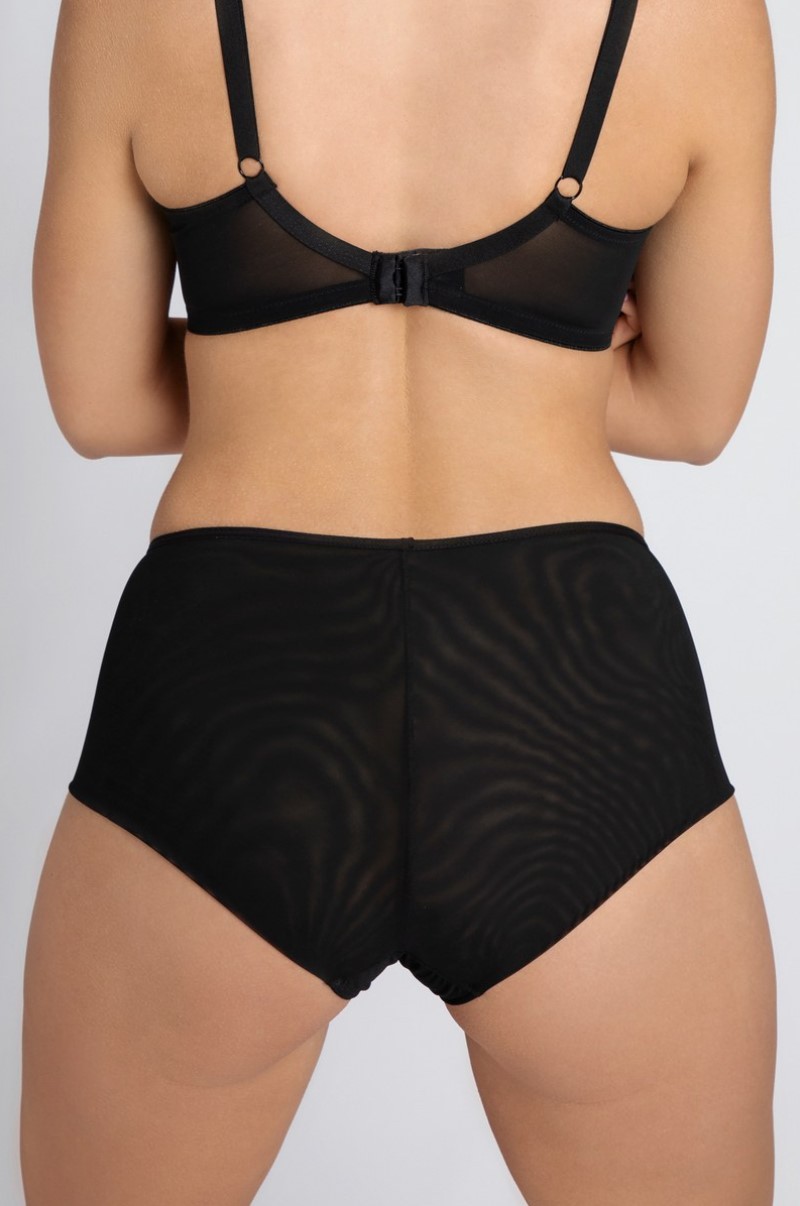 Трусы BERTA с высокой посадкой от европейского производителя Subtille. Модель выполнена из сетки с кружевной вышивкой и двойного микротюля. Хлопковая ластовица.