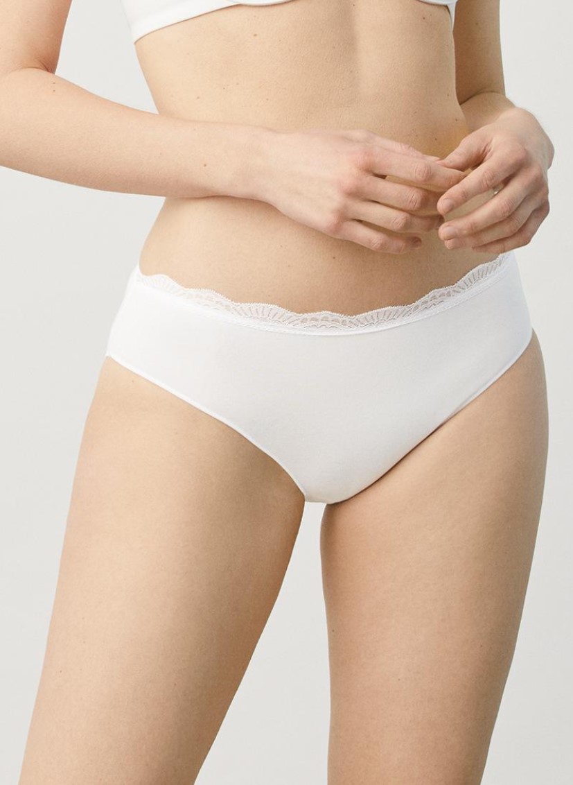 Трусы миди из ткани Cotton Nature. Натуральные волокна этого материала придают одежде дополнительную мягкость. Его отделка с невидимыми плоскими швами предотвращает появление следов и способствует большей приспособляемости и идеальной эргономике. Базовая модель с большим комфортом, рассчитанная на повседневную работу. Декорирован кружевом. Изготовлен из антиаллергенного материала.