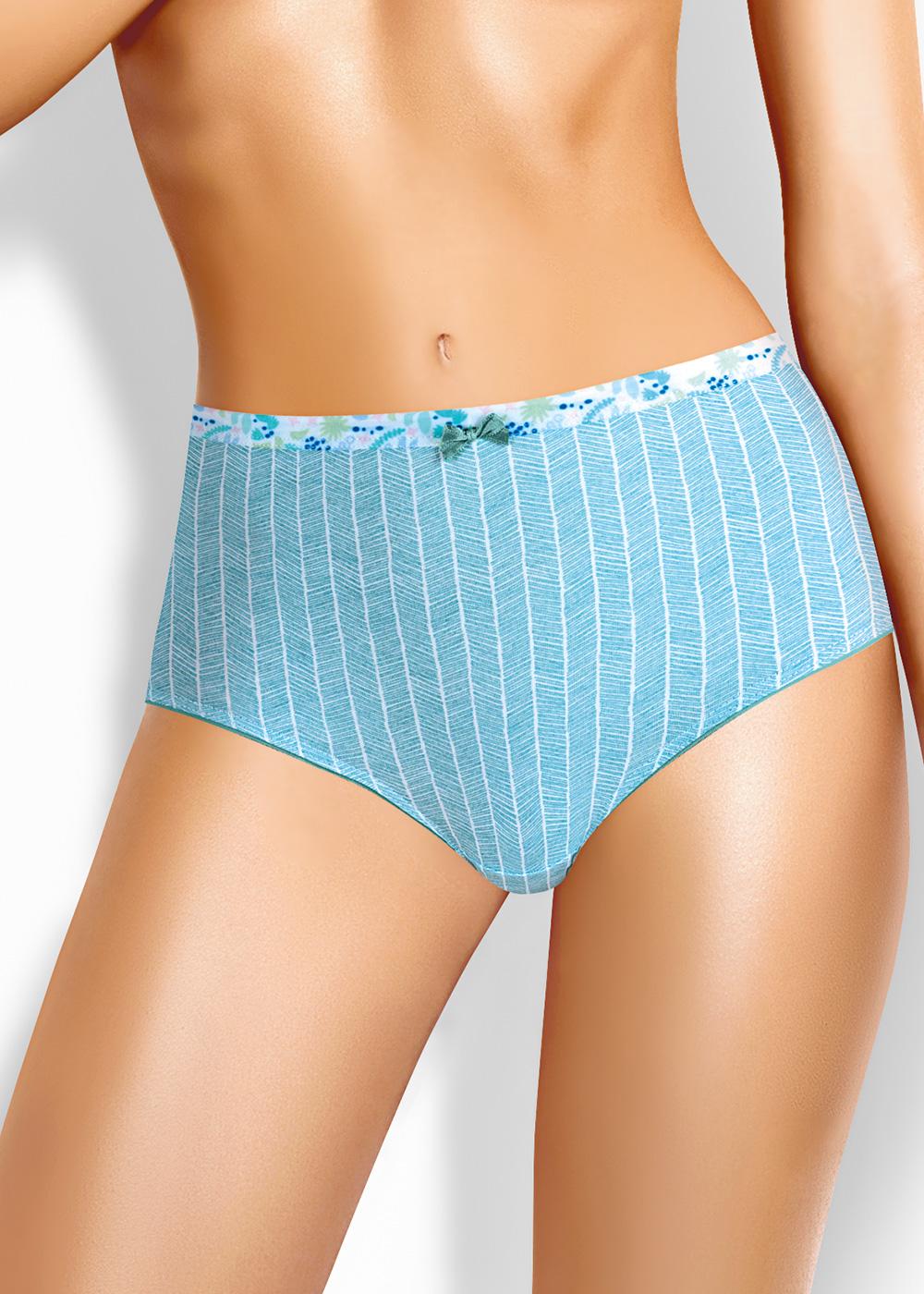 Трусы макси из трикотажного полотна с эластаном в набивку. По талии и ноге обработка окантовкой. Спереди бант.