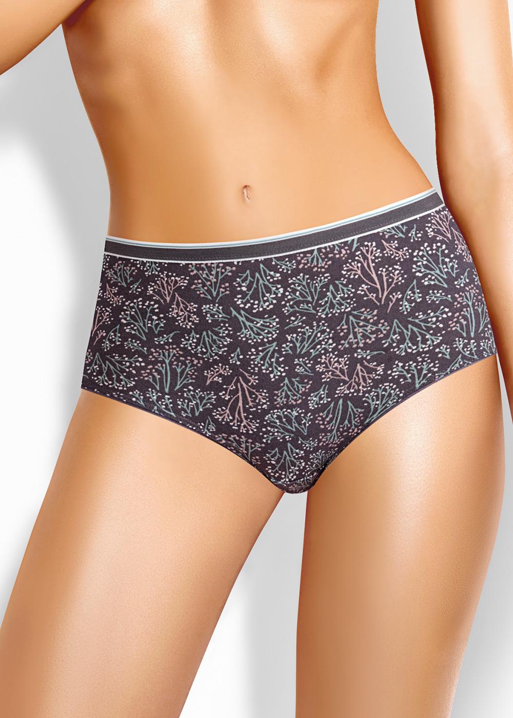 Трусы макси из набивного хлопкового полотна с добавлением эластана комфортной посадки. По талии жаккардовая резинка. По ноге окантовка.