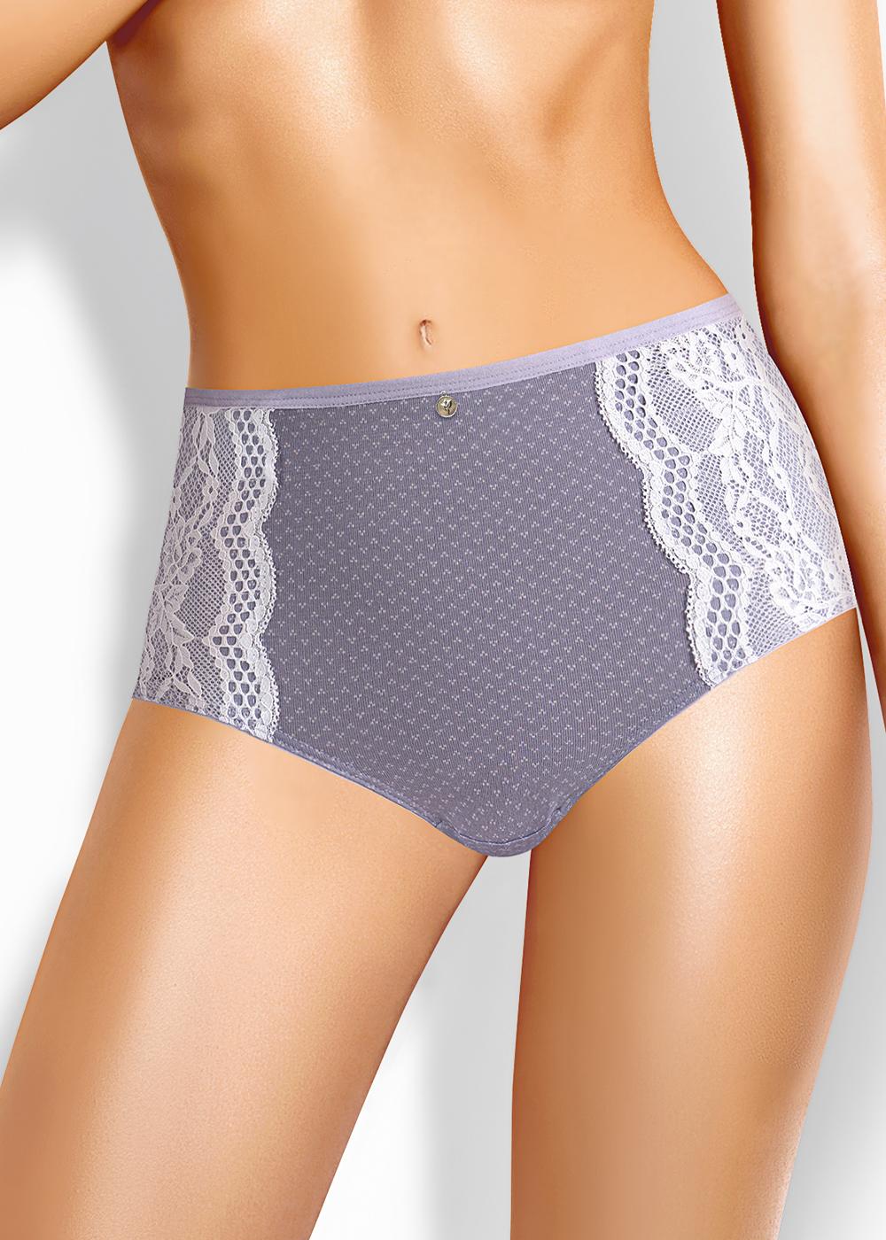 Трусы-макси женские из плотного эластичного хлопкового полотна. Обработка краев - окантовка. По переду боковые вставки из кружева и металлическая нашивка.