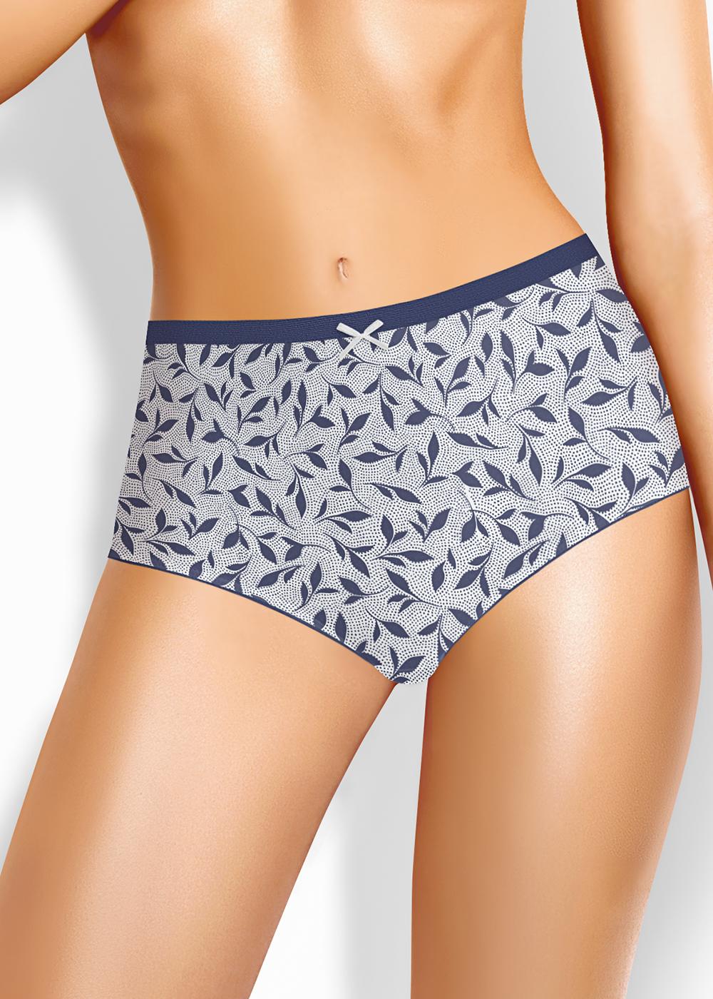 Женские трусы макси из хлопка с эластаном, по талии окантовочная резинка с напечатанным логотипом, по ножке полуокантовка, спереди пришивной бант