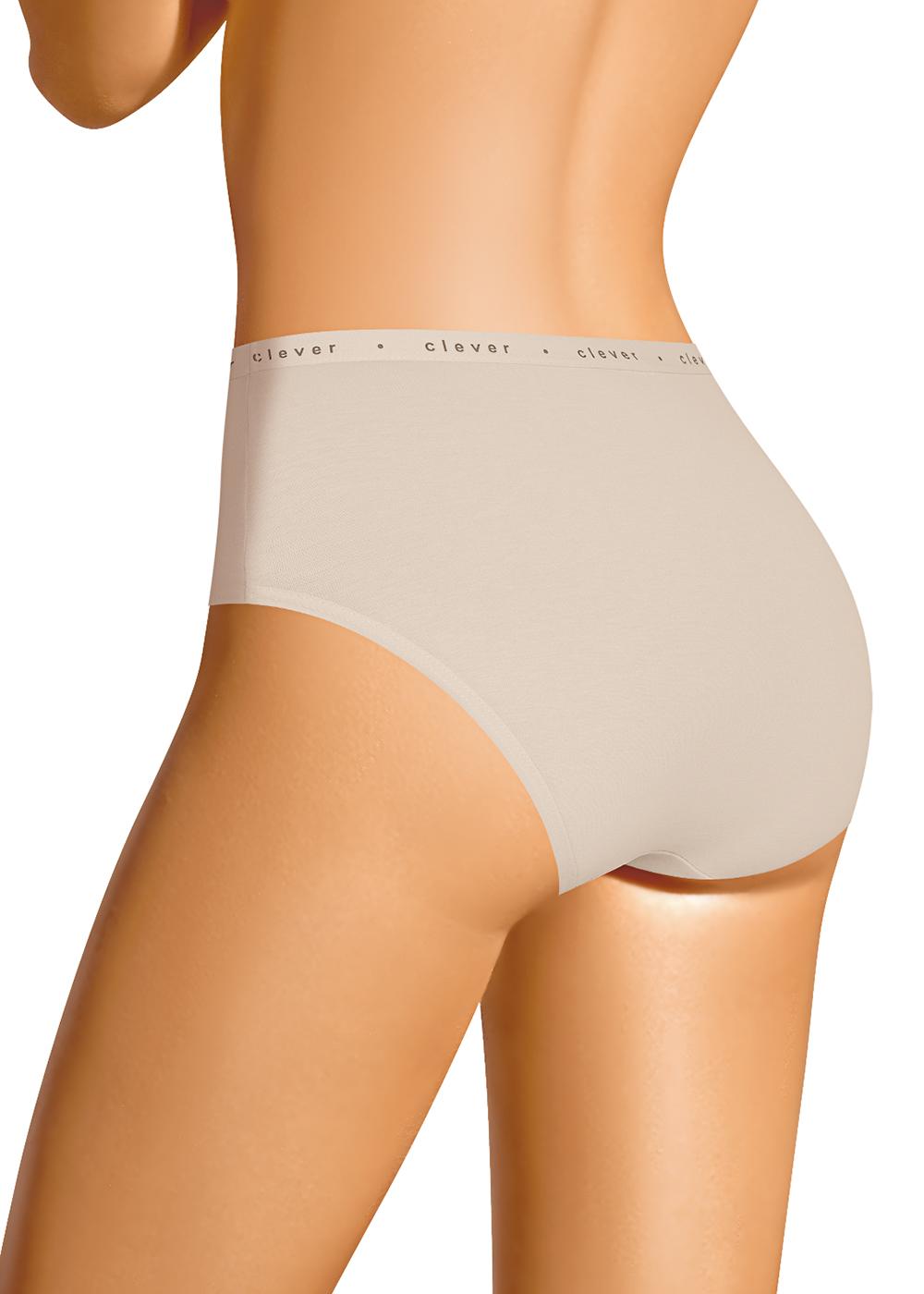 Трусы слипы-макси женские из эластичного хлопкового полотна. Обработка краев по талии резинка с принтом, по ноге - полуокантовка.