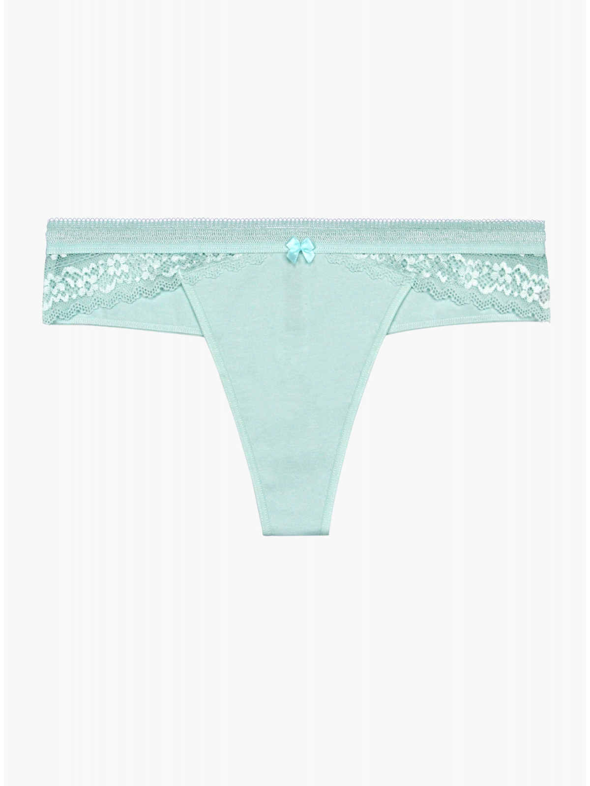 Трусы-стринги из хлопка, зеленого цвета, с кружевными вставками, на мягкой резинке.