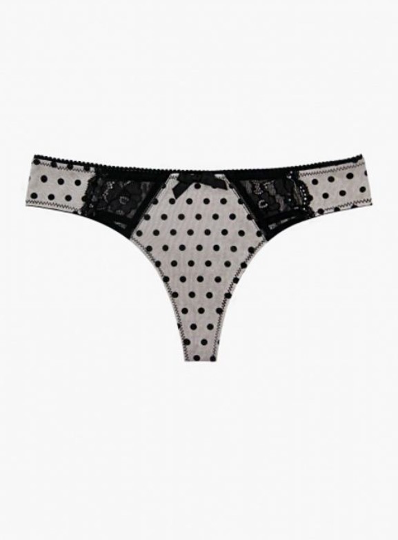Женские трусы от торговой марки Индефини. Трусы-стринги из хлопка, серого цвета, с принтом, с кружевными вставками и обрамлением, средней посадки, на мягкой резинке.