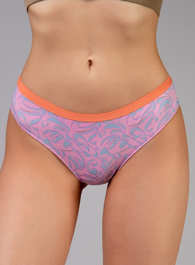 Женские трусы от торговой марки Индефини. Трусы-стринги из хлопка, розового цвета, с принтом, с кружевной частью сзади, на мягкой резинке, средней посадки.