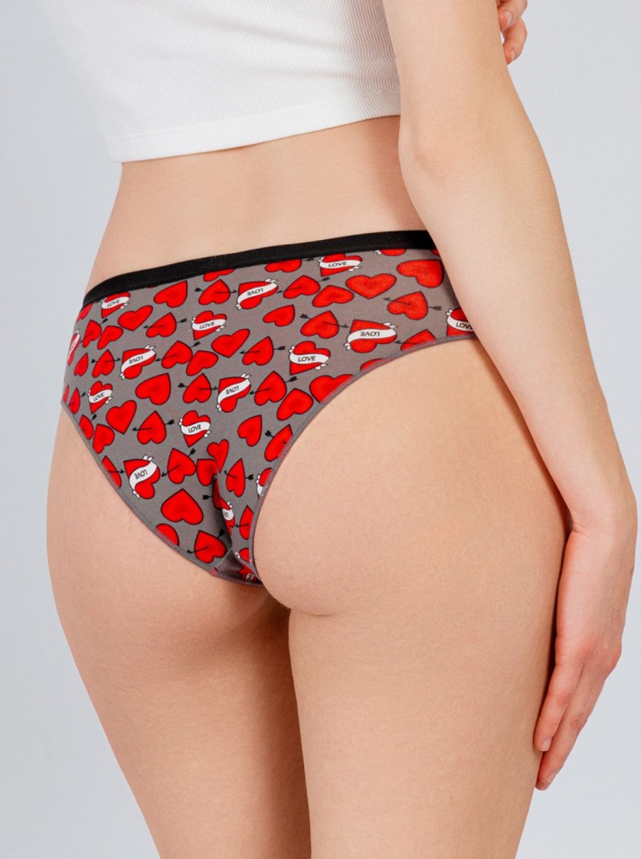 Трусы танга женские, изготовленные из мягкого хлопка, комфортные и свободные в носке, не сковывают движений. Трусы средней посадки с эластичной резинкой на талии надежно фиксируются, обеспечивая стабильность и удобство во время носки. Женские трусы танга украшены принтом с изображением сердечек.