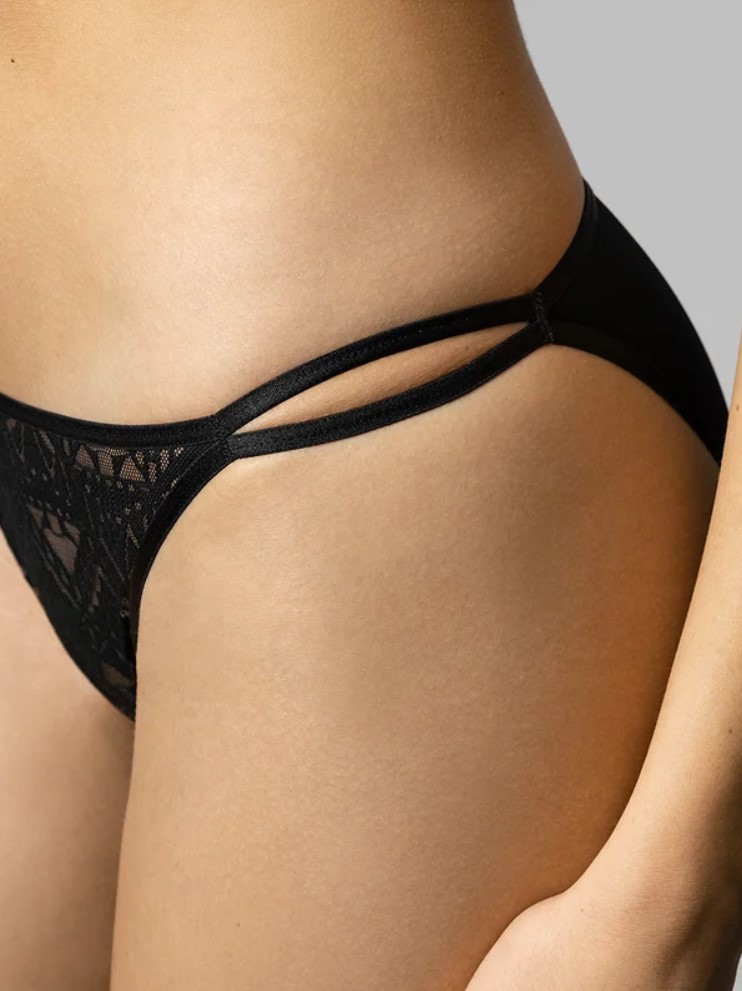 Трусы - танга из кружева и эластичной микрофибры с низкой линией талии. С акцентной лентой в тон по краям. Эффектно открывают бедра. Ластовица из мягкого хлопка обеспечивает дополнительный комфорт.