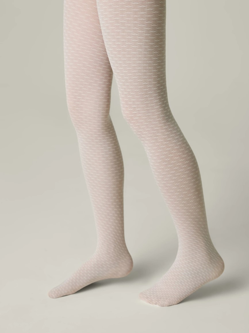 Колготки с ажурным геометрическим рисунком JULIA – лаконичная модель, которая поможет создать нежные и утончённые образы на каждый день.