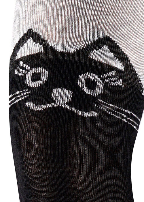 Детские, двухцветные колготки из хлопка для девочек. Модель с принтом в виде кошки.