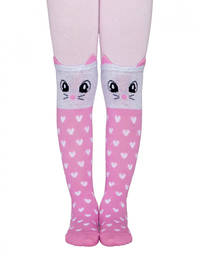 Мягкие эластичные удобные и практичные детские колготки из хлопка, с рисунками-мордашками и декоративными элементами на ножках в виде ушек.