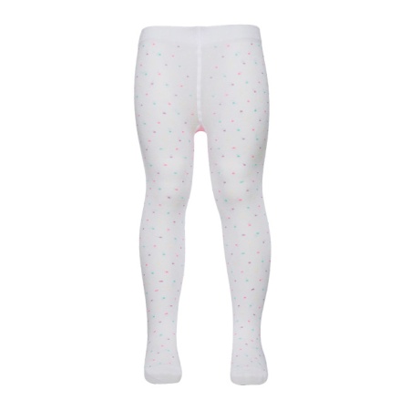 Мягкие и практичные детские колготки из дышащего хлопка с добавлением эластичных нитей, цвет белый. Колготки в разноцветный горох, на попе тематический яркий рисунок. Носок и пятка уплотнены. На поясе эластичная резинка, есть ластовица.