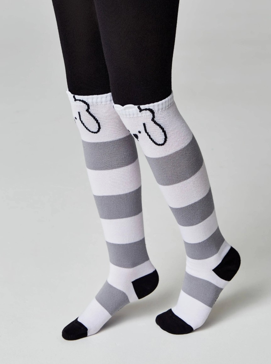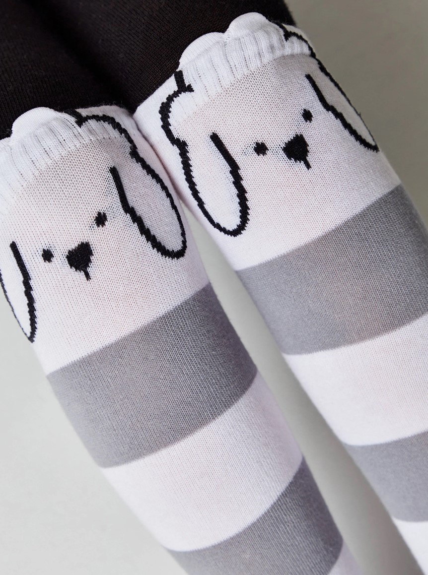 Мягкие эластичные удобные и практичные детские колготки из хлопка, с рисунками-мордашками и декоративными элементами на ножках в виде ушек.
