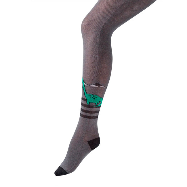 Детские колготки из хлопка с добавлением эластана для комфорта и эластичности изделия. На голени рисунок "динозавр", Носок и пятка контрастного цвета.