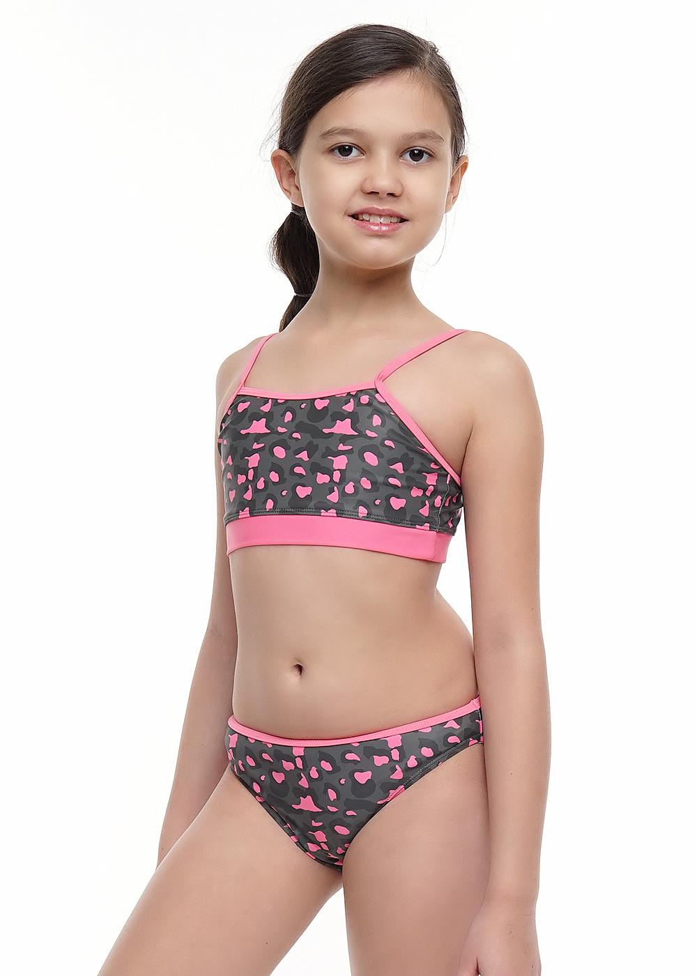 Привлекательный купальник бикини с набивным рисунком под леопард, в сочетании с ярким однотонным полотном.топ с обтачкой под грудью и подкладом впереди. бретели с регулировкой. бикини с подлкадом по ластовице