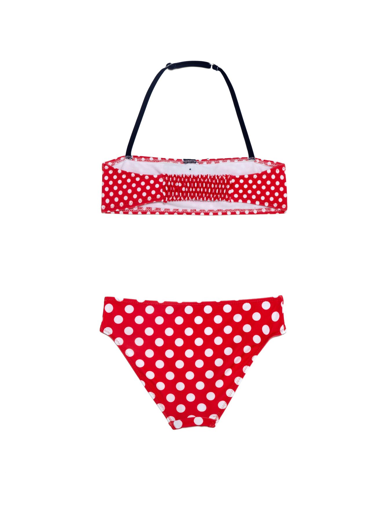 Купальный костюм для девочки из эластичного трикотажного полотна. Топ фиксируется узкой бретелью за шею. Трусы купальные классические.