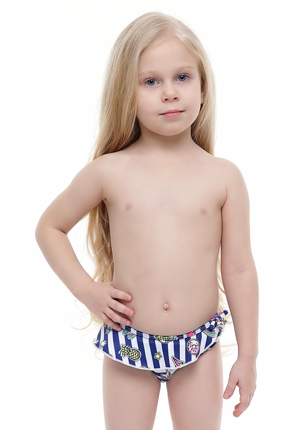 Бикини с тематическим набивным рисунком, по верхнему краю - оборка, дополненная бантиком. Ластовица с подкладом