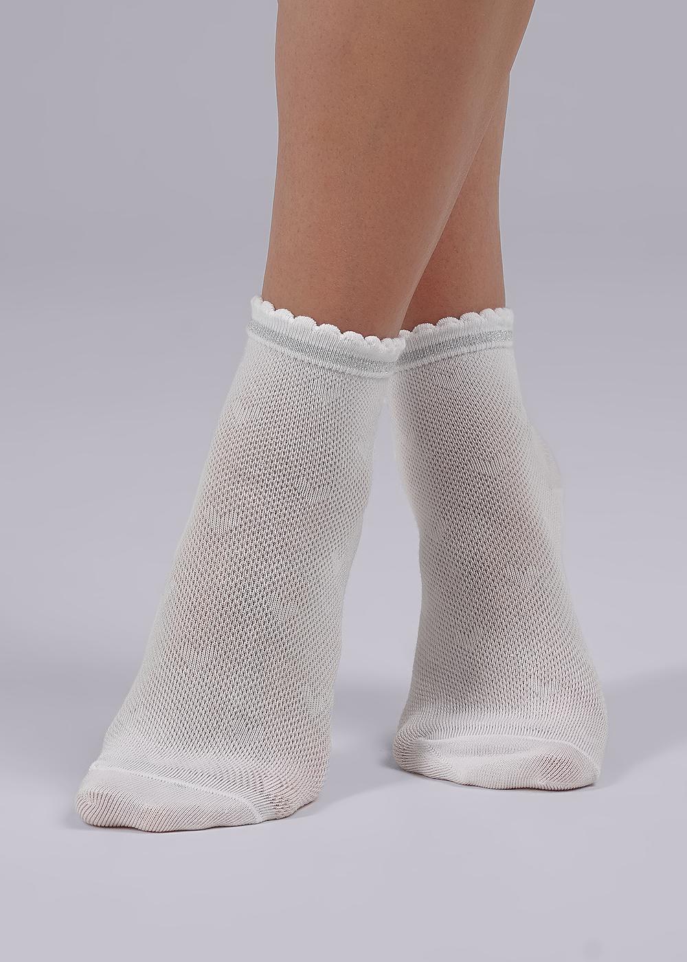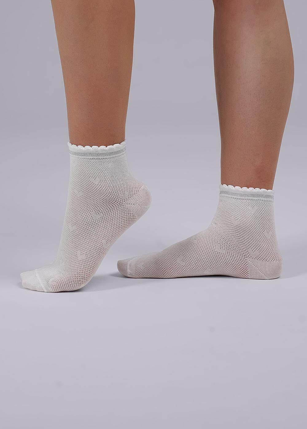 Красивые ажурные носки с сердечками, резинка украшена люрексом.