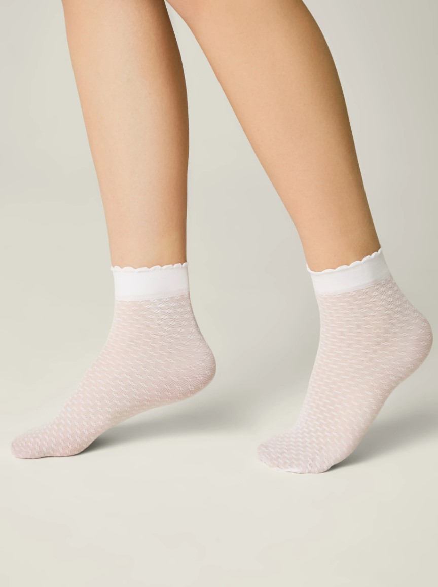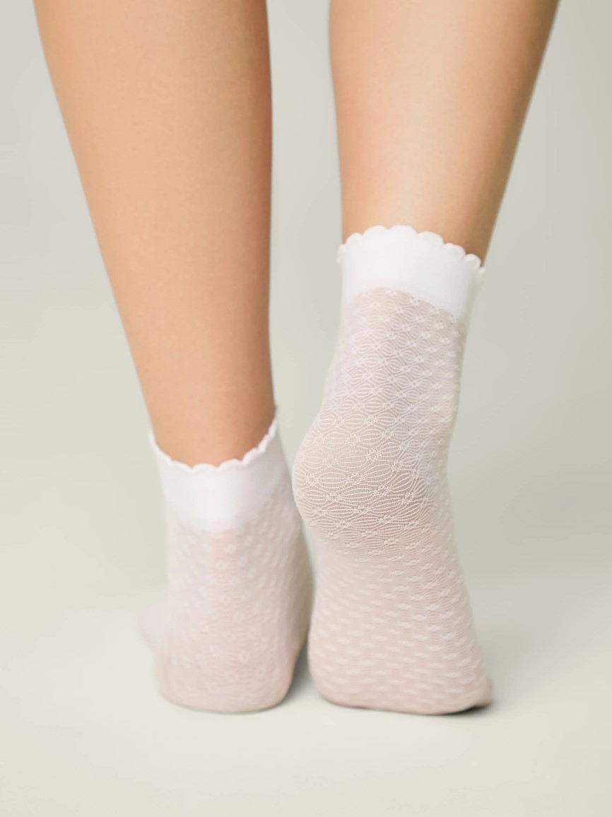 Тонкие носки с ажурным геометрическим рисунком JULIA – лаконичная модель, которая поможет создать нежные и утончённые образы на каждый день.