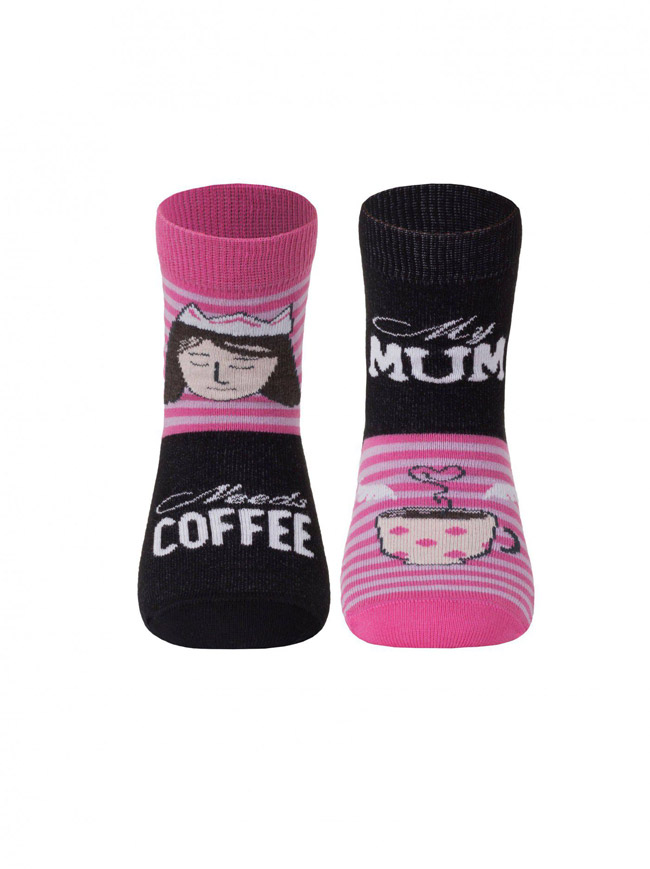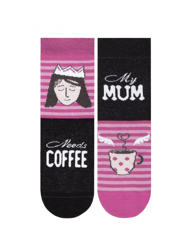 Яркие носки для девочек из трикотажного хлопка с тематическим ярким принтом и полосками. Модель удлиненная. На голени эластичная цветная резинка. Носок и пятка контрастного цвета.
