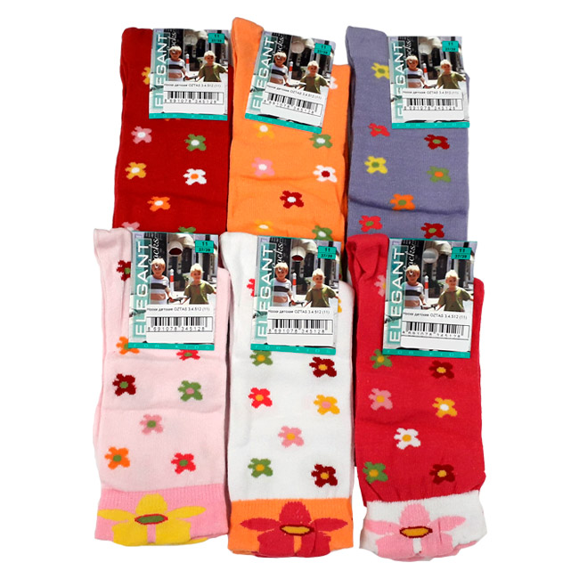 Детские носки для девочек выполнены из эластичного мягкого полотна с добавлением хлопка. Носки однотонные, с разноцветными яркими цветочками. Комфортная разноцветная резинка на голени. Возраст 7 лет. Цена указана за одну пару. В заказах через интернет-магазин указывайте цвет изделия.