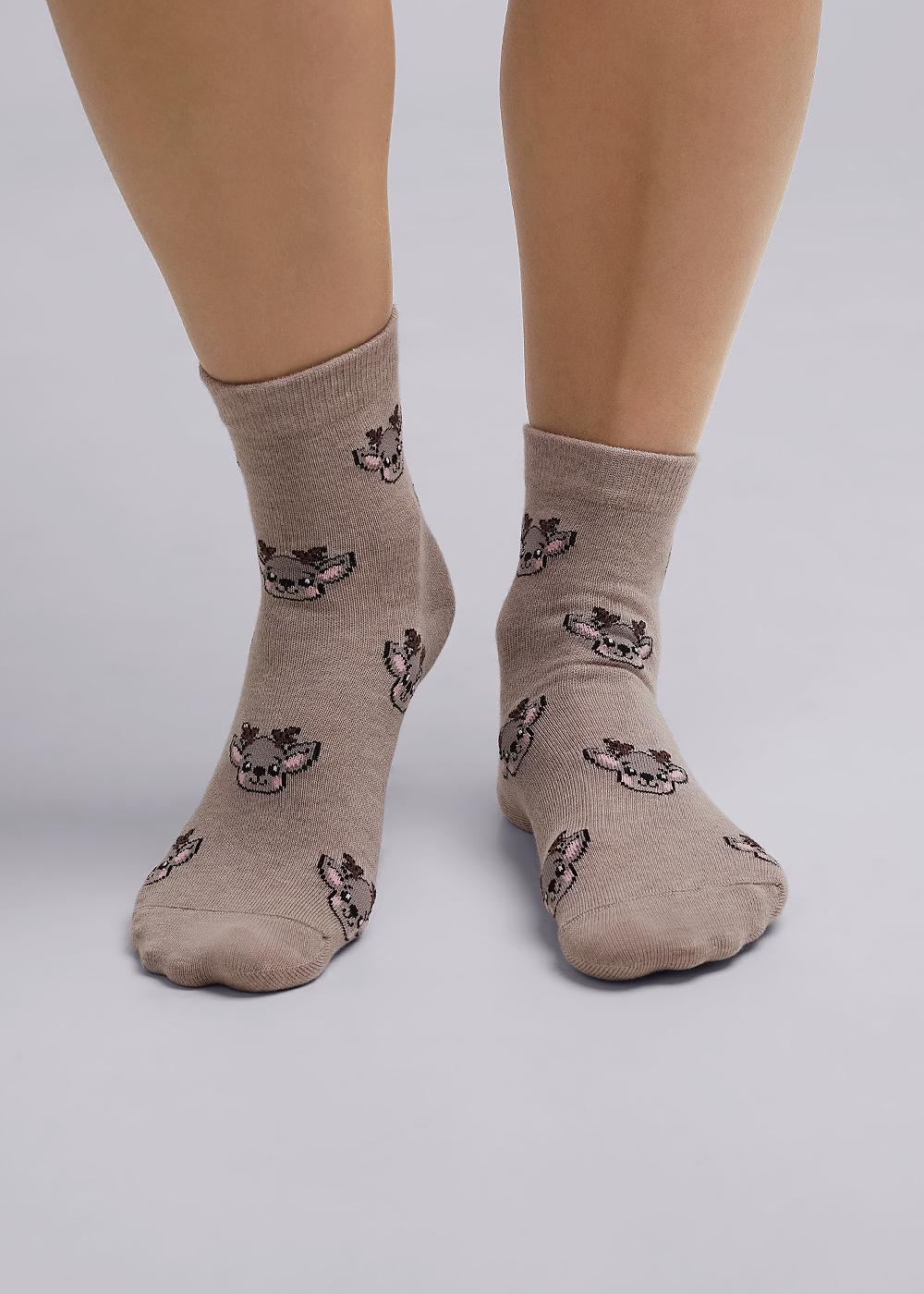Новогодние носки для девочки с рисунком мордочка оленёнка.