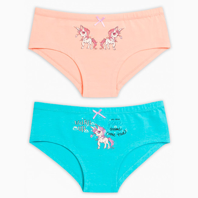 Трусики-шортики для девочек выполнены из однотонного трикотажного хлопка с добавлением небольшого количества эластана. Цвета: персиковый и бирюза. Впереди принт сказочные пони. На поясе мягкая резинка и декоративный бантик. Цена указана за одну позицию. При заказе через интернет-магазин указывайте в комментариях цвет изделия.
