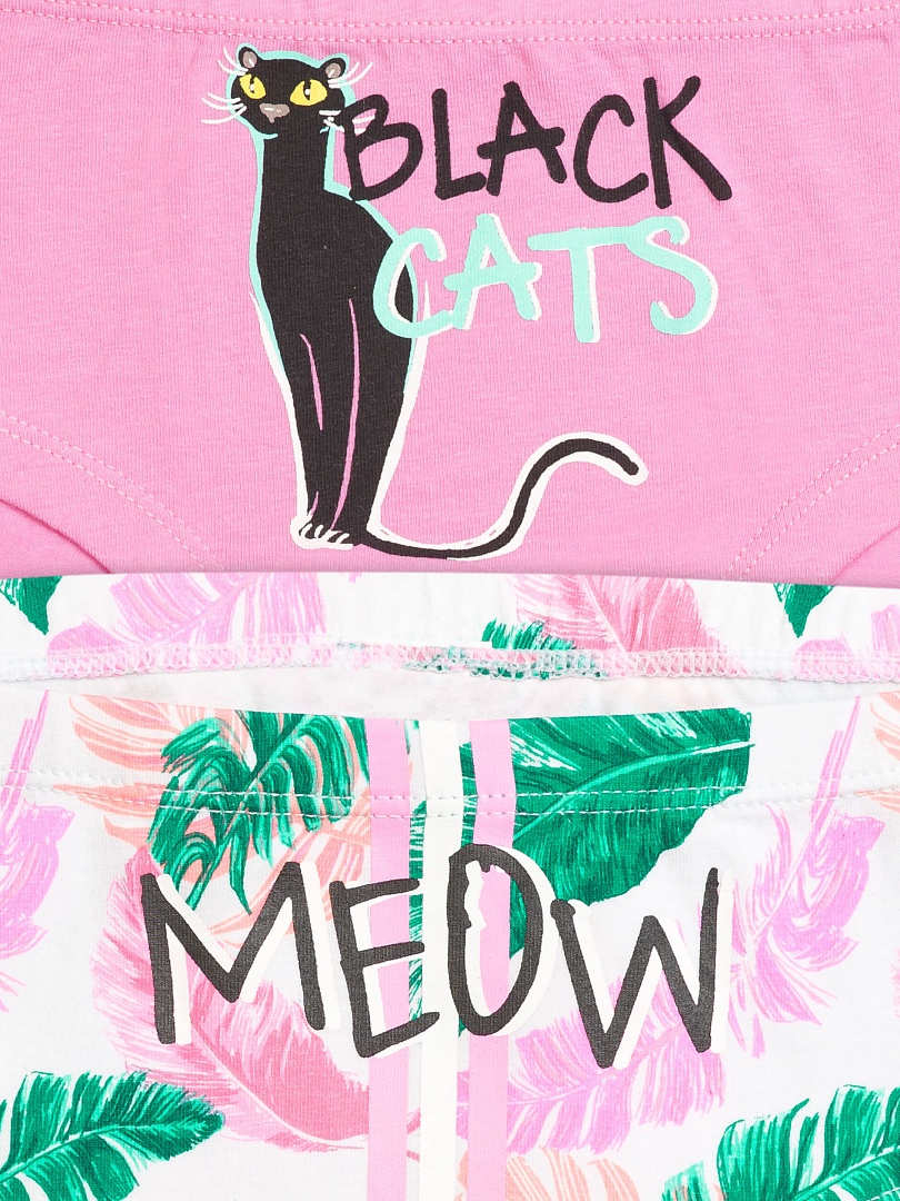 Трусики-шортики для девочек. Принт в стиле неоновых джунглей. Перевод надписей в принте Мяу и Чёрные кошки. Цена указана за одну позицию. При заказе через интернет-магазин указывайте в комментариях цвет изделия.