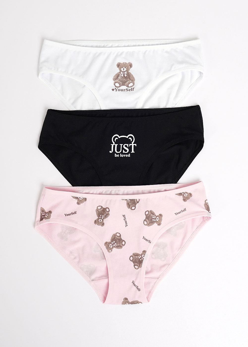Комплект трусов для девочки из хлопка с эластаном. Классическая модель дополнена резинкой по талии и ножке для обеспечения комфорта при движении. Стильные принты и набивки подарят хорошее настроение и уверенность на целый день!Цена указана за одну позицию. При заказе через интернет-магазин указывайте в комментариях цвет изделия.