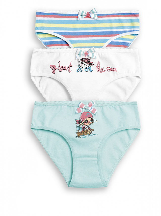 Детские трусы для девочек с набивным или принтованным рисунком. На поясе декоративный бантик.