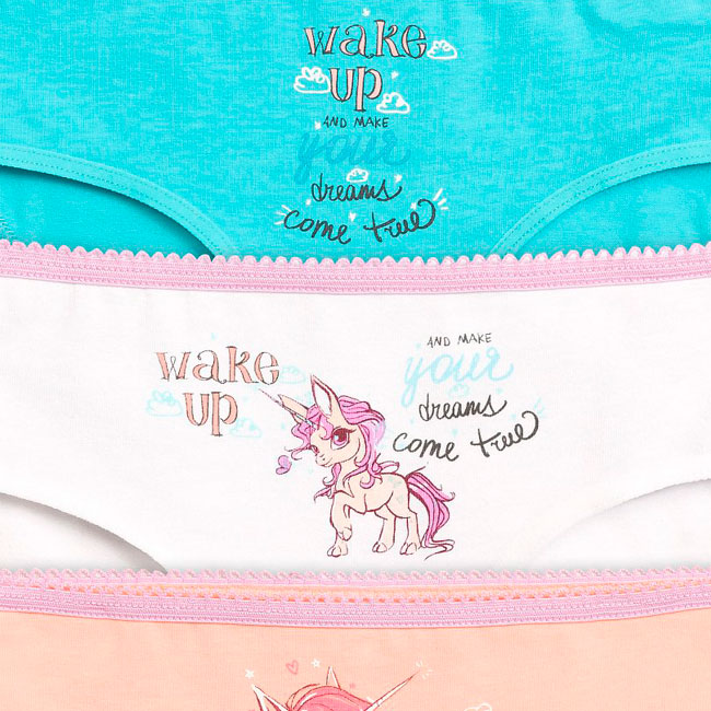 Трусики-шортики для девочек выполнены из однотонного трикотажного хлопка с добавлением небольшого количества эластана. Цвета: персиковый, бирюза, белый. Принт: волшебные пони. По талии - контрастный эластик. Цена указана за одну позицию. При заказе через интернет-магазин указывайте в комментариях цвет изделия.