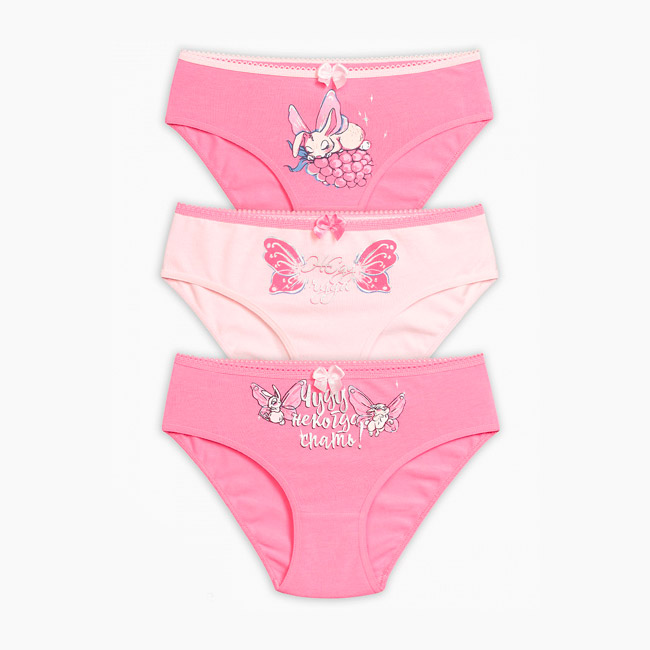 Трусы-слипы для девочек из трикотажного хлопка, с тематическим принтом. Цвета: розовый/пудра. Трусики декорированы аккуратным бантиком. По талии мягкая и эластичная резинка. Цена указана за одну позицию. При заказе через интернет-магазин указывайте цвет изделия.