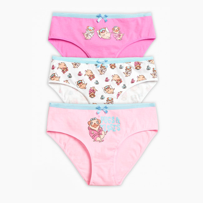 Трусы-слипы для девочек из трикотажного хлопка, с тематическим принтом. Цвета: розовый/белый. Трусики декорированы аккуратным бантиком. По талии мягкая и эластичная резинка. Цена указана за одну позицию. При заказе через интернет-магазин указывайте цвет изделия.