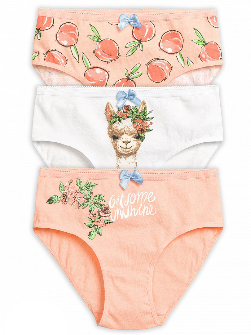 Трусики-слипы для девочек. Нежный принт. По талии эластик с фестонным краем, декорирован атласным бантиком. Обработка эластиком по ноге. Цена указана за одну позицию. При заказе через интернет-магазин указывайте в комментариях цвет изделия.