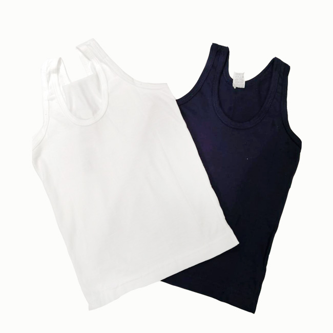 Детская базовая майка для мальчиков из трикотажного однотонного хлопка. Майка с широкими бретелями, обшитыми окантовкой по краям.