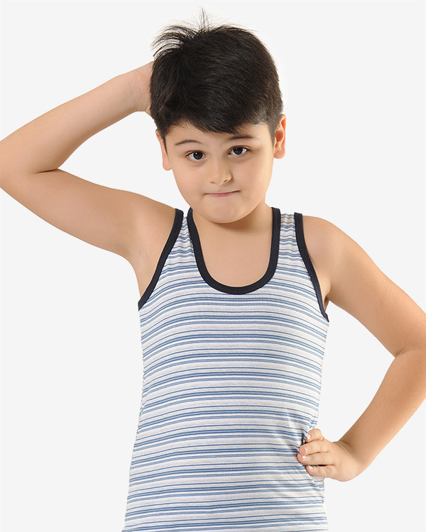Детская футболка для мальчиков из набивного хлопка в горизонтальную полоску. При заказе через интернет-магазин указывайте в комментариях цвет изделия.