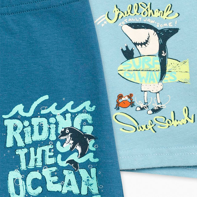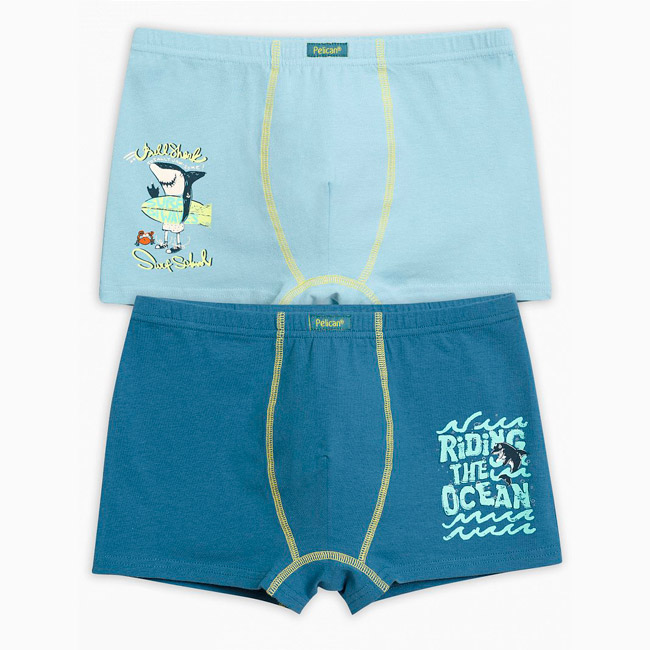Трусы-шорты для мальчиков выполнены из однотонного хлопка с добавлением эластана. Принт в морской тематике расположен на боковой части изделия, контрастная отстрочка в области гульфика. Цена указана за одну позицию.