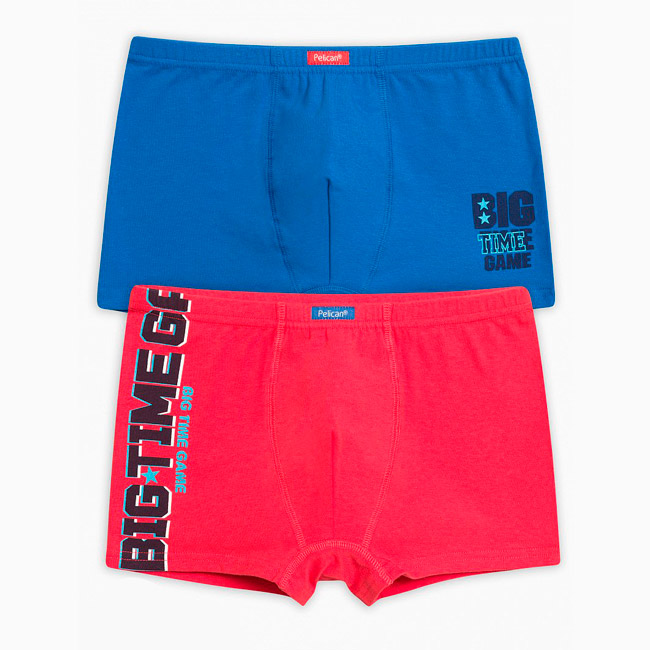 Трусы-шорты для мальчиков выполнены из однотонного хлопка с добавлением эластана. Принт в спортивной тематике расположен на боковой части изделия, контрастная отстрочка в области гульфика. Цена указана за одну позицию.