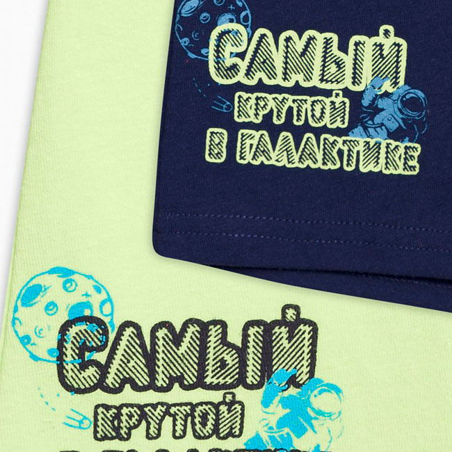 Трусы-шорты для мальчиков выполнены из однотонного хлопка с добавлением эластана. Принт-надпись "самый крутой в галактике" расположен на боковой части изделия, гульфик анатомически профилирован. Цена указана за одну позицию.