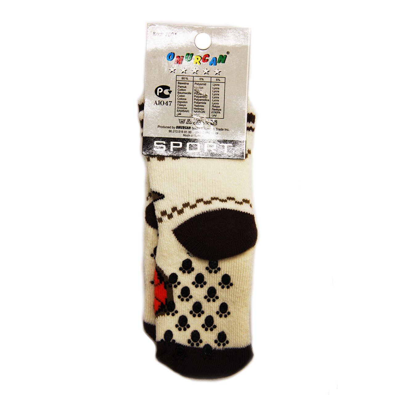 Детские носки для девочек и мальчиков выполнены из эластичного мягкого полотна с добавлением хлопка. Комфортная, мягкая резинка на голени. На ступне антискользящие покрытия.